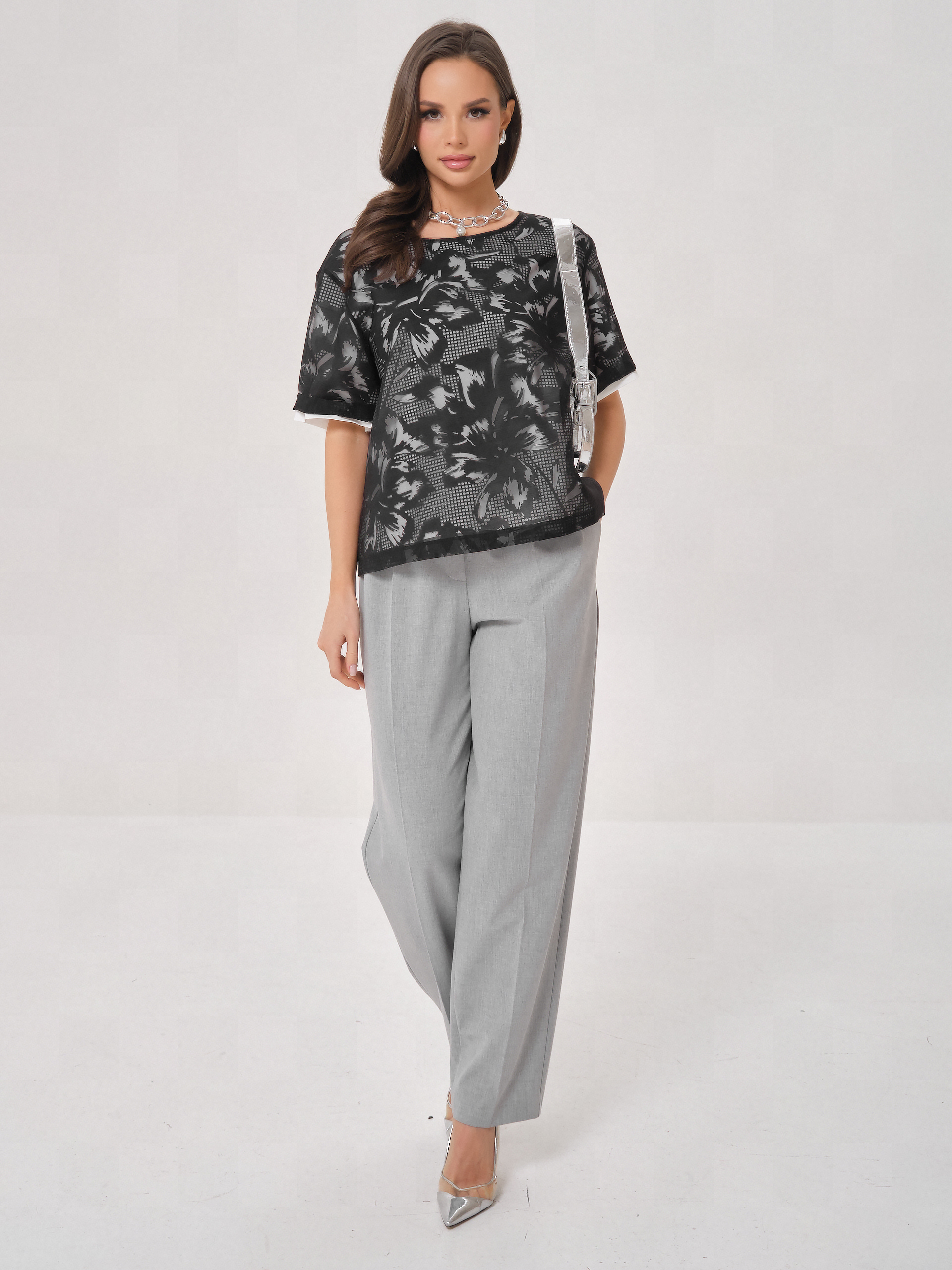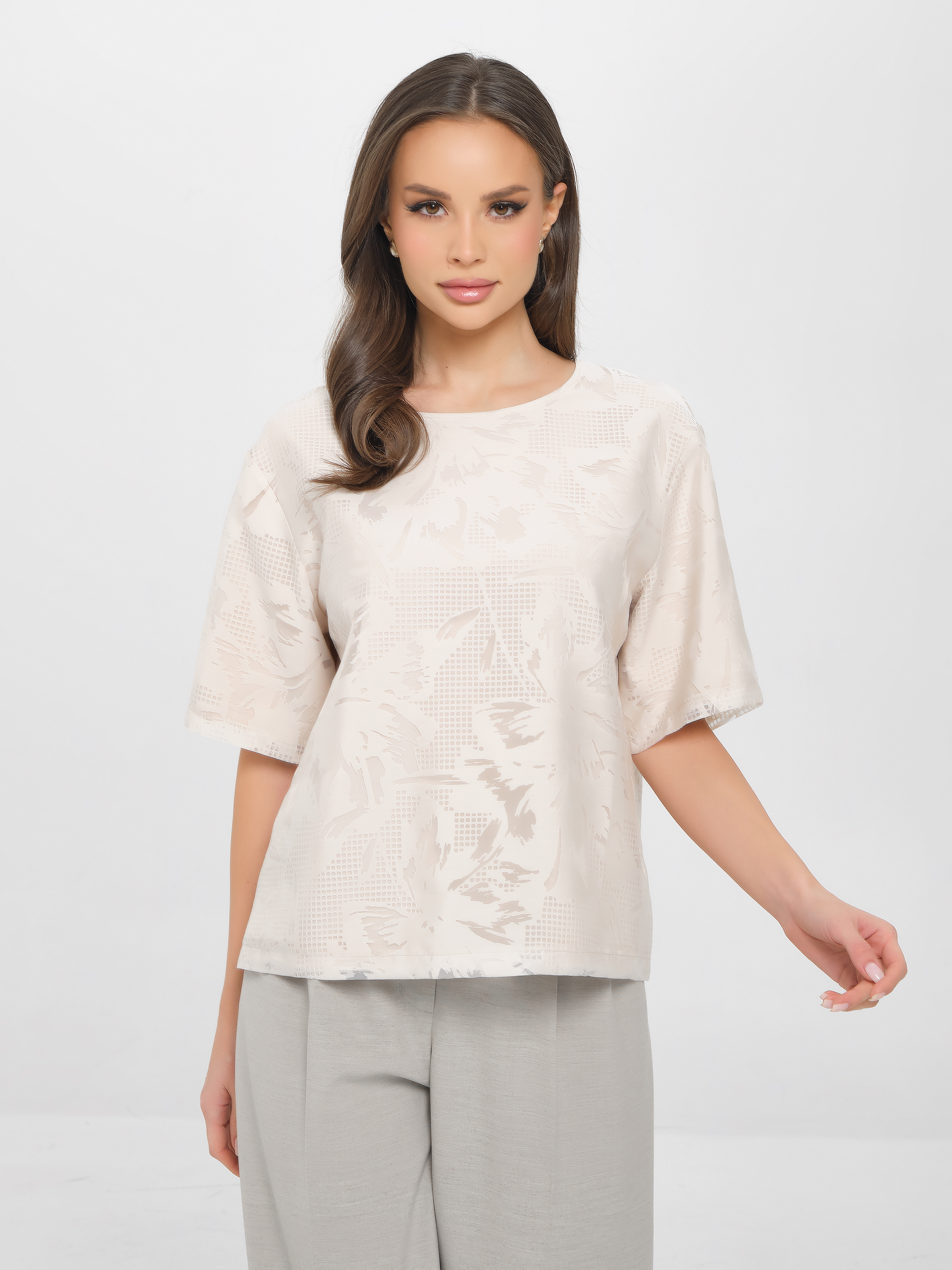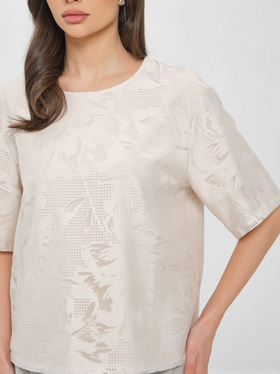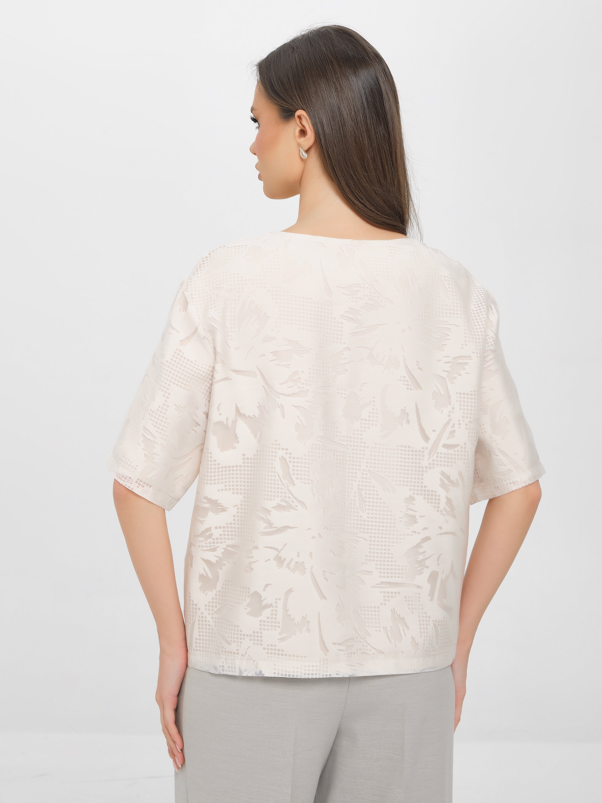 Блузка из органзы с вытравной печатью. Вытравная печать сохраняет дышащие свойства текстиля. Даже при носке одежды в жару кожа дышит.