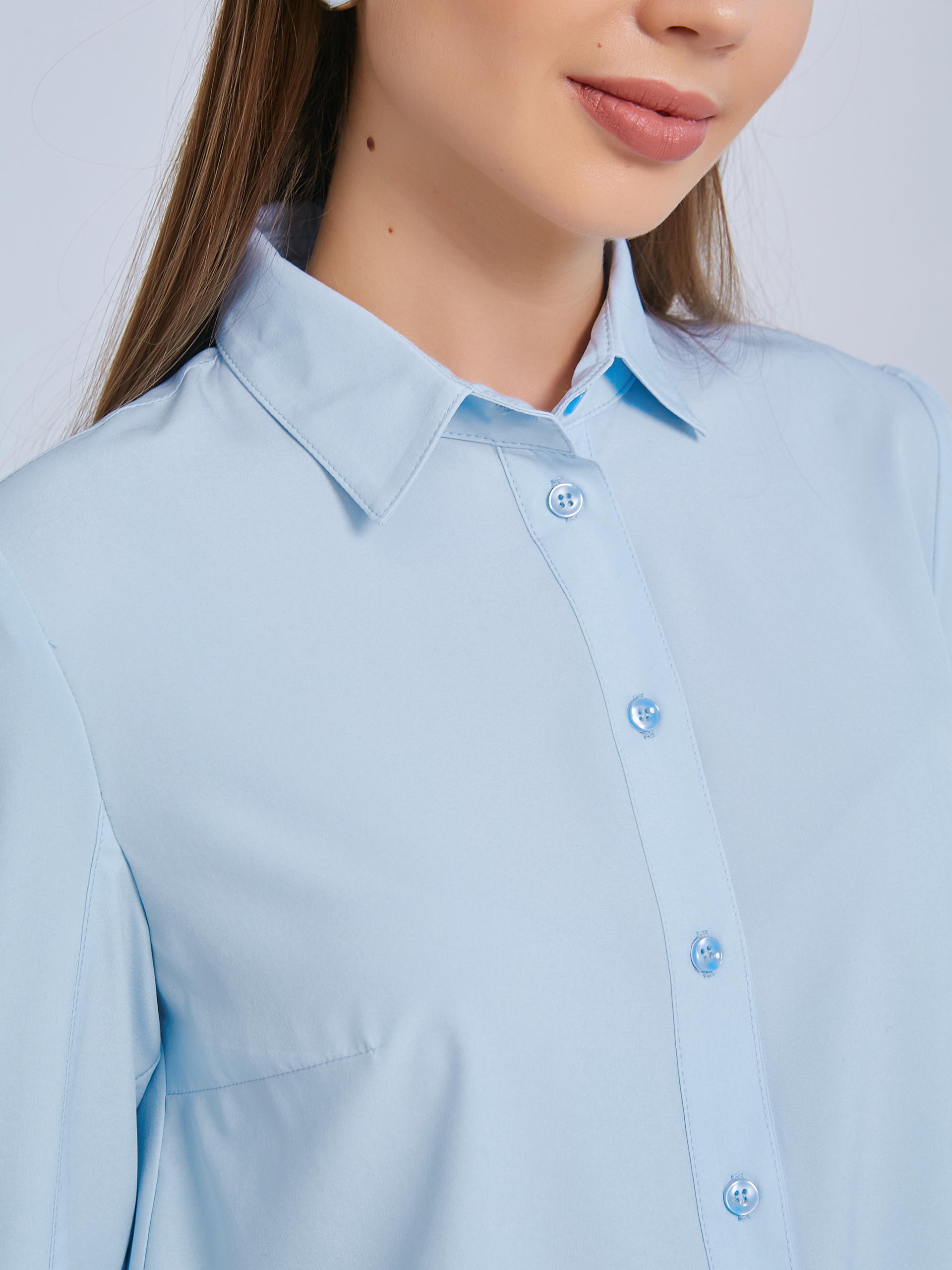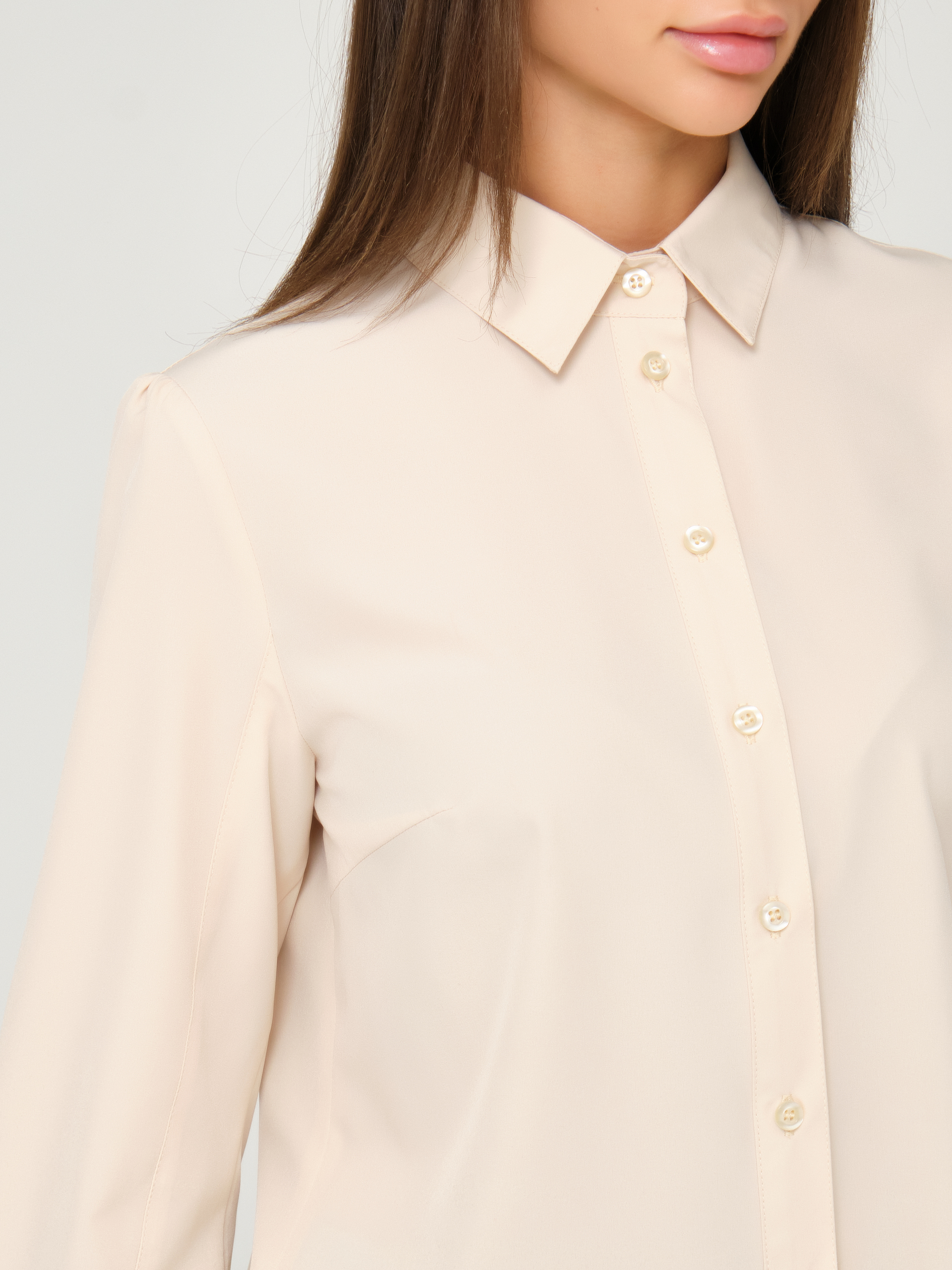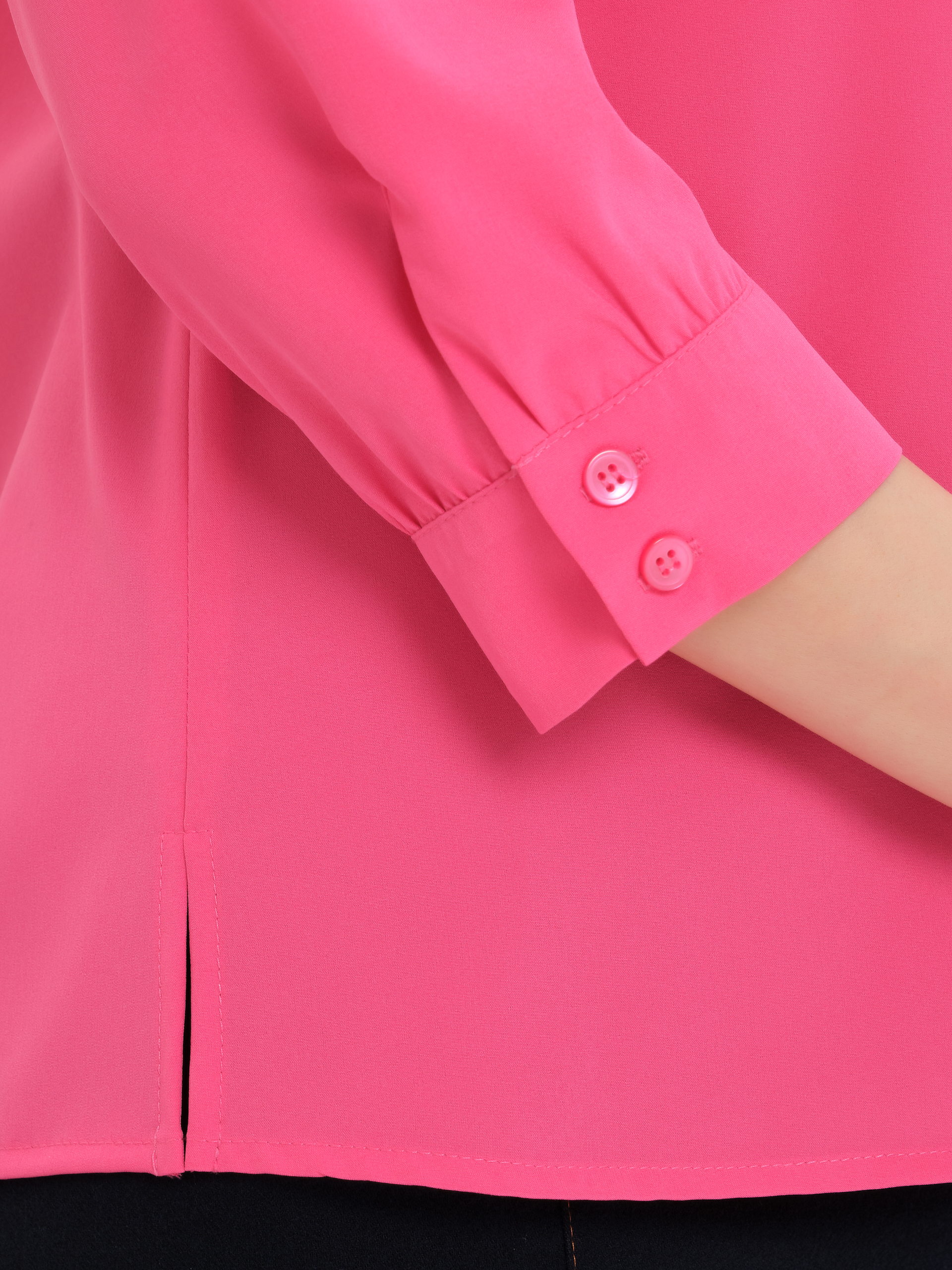 Рукав с небольшой сборкой по верху и низу, застегивается на 2 петли и пуговицы.