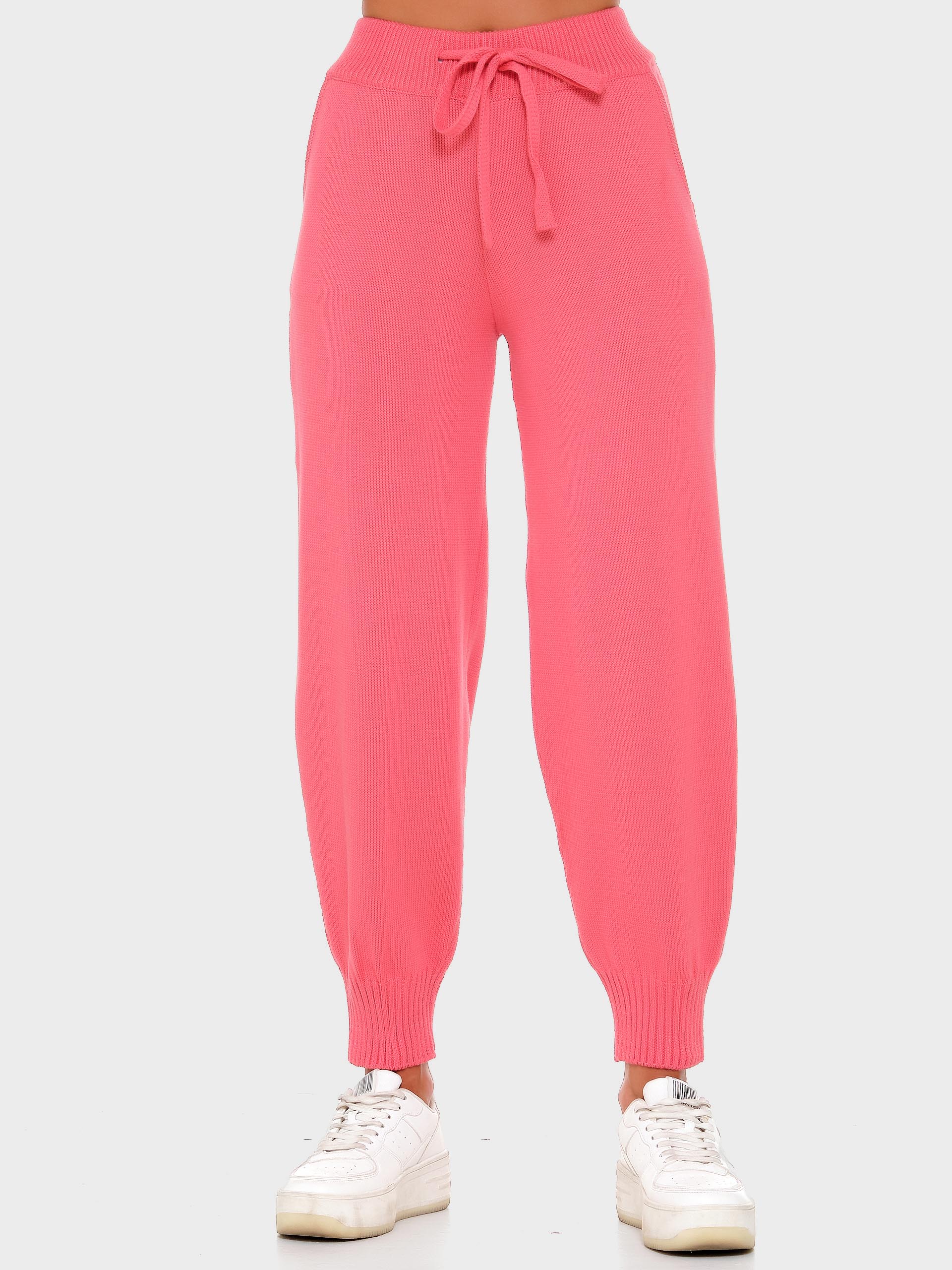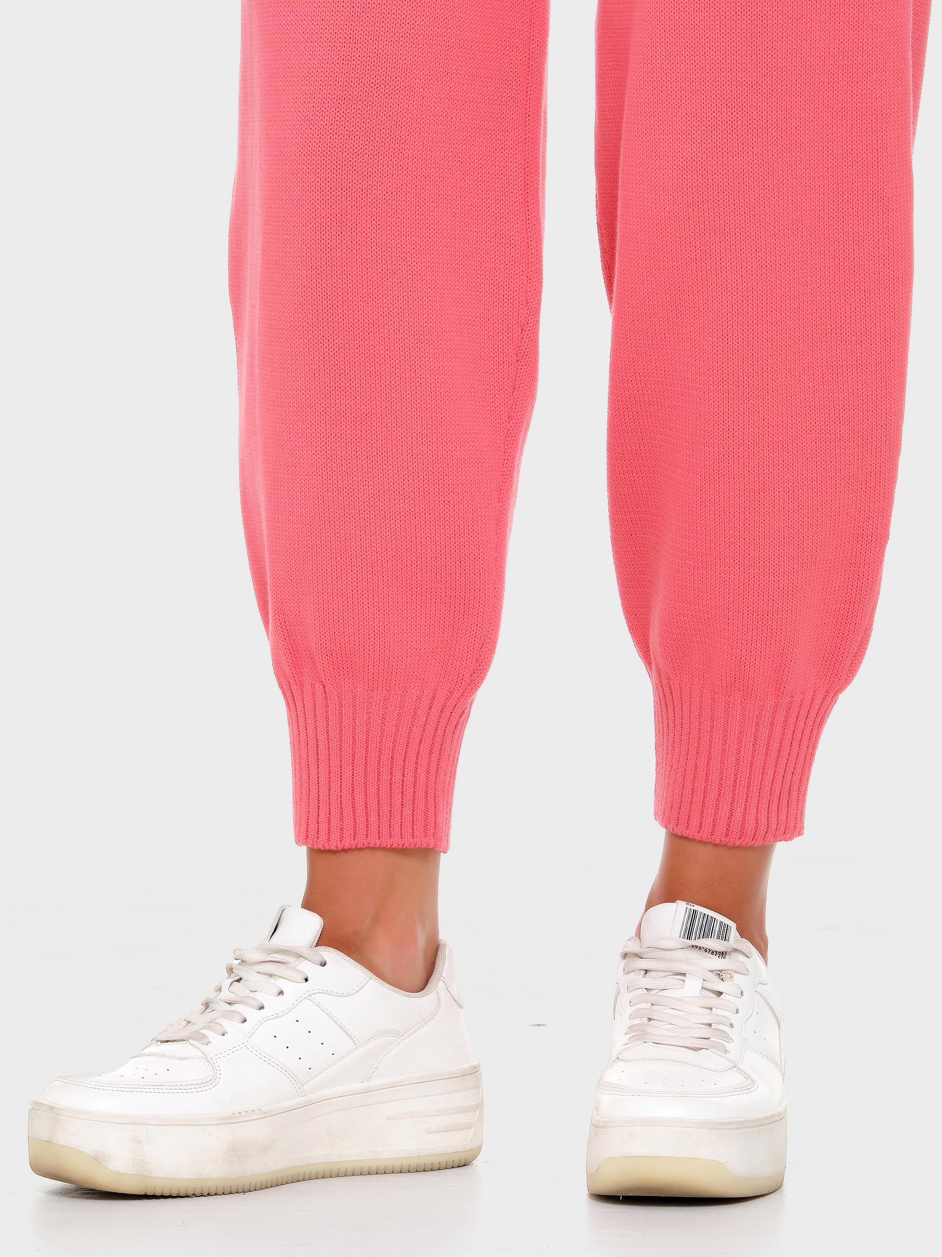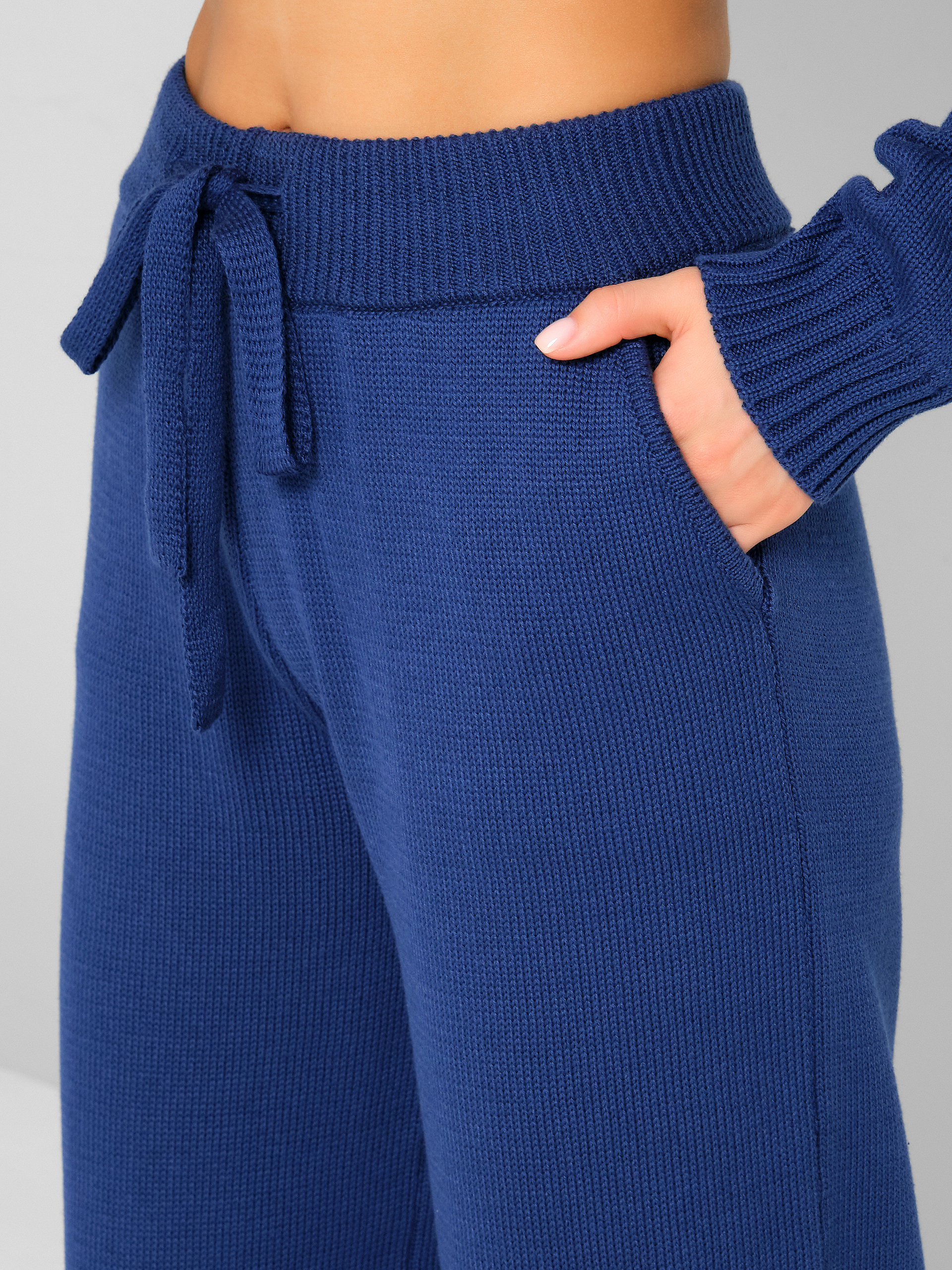 Пояс с резиной и кулисой, в которую вставлен вязаный шнурок.