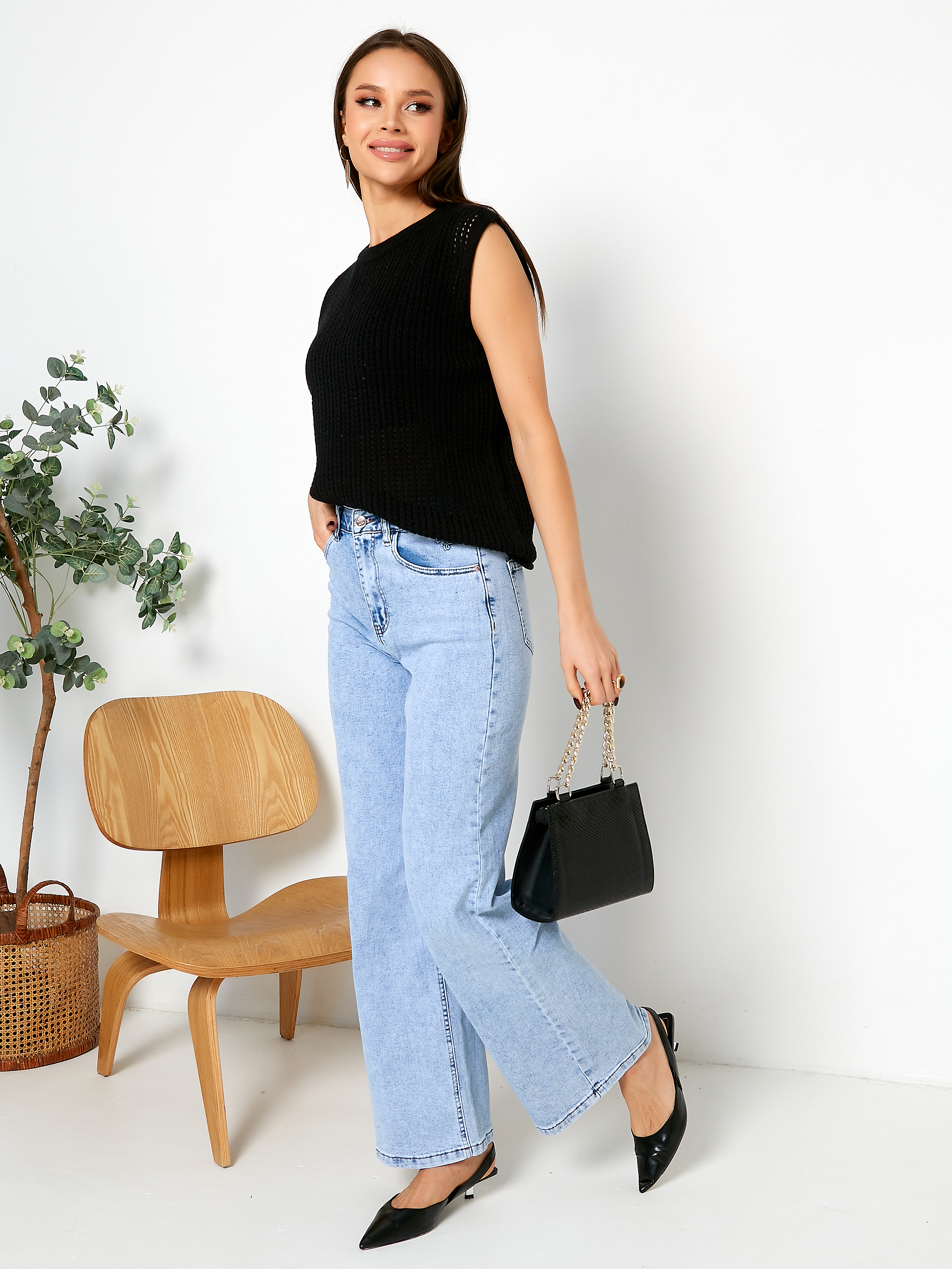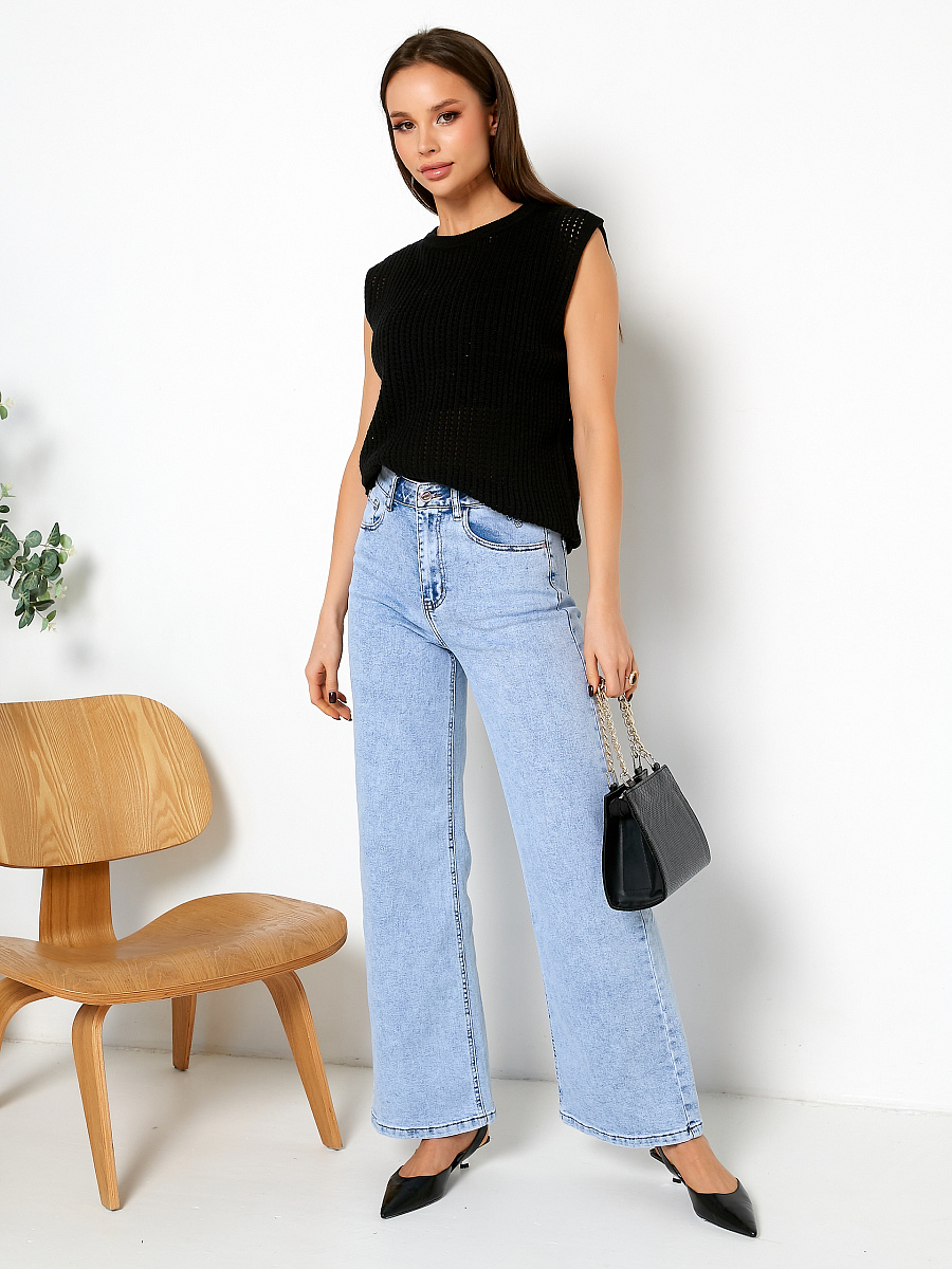 Джинсы светло-голубые.