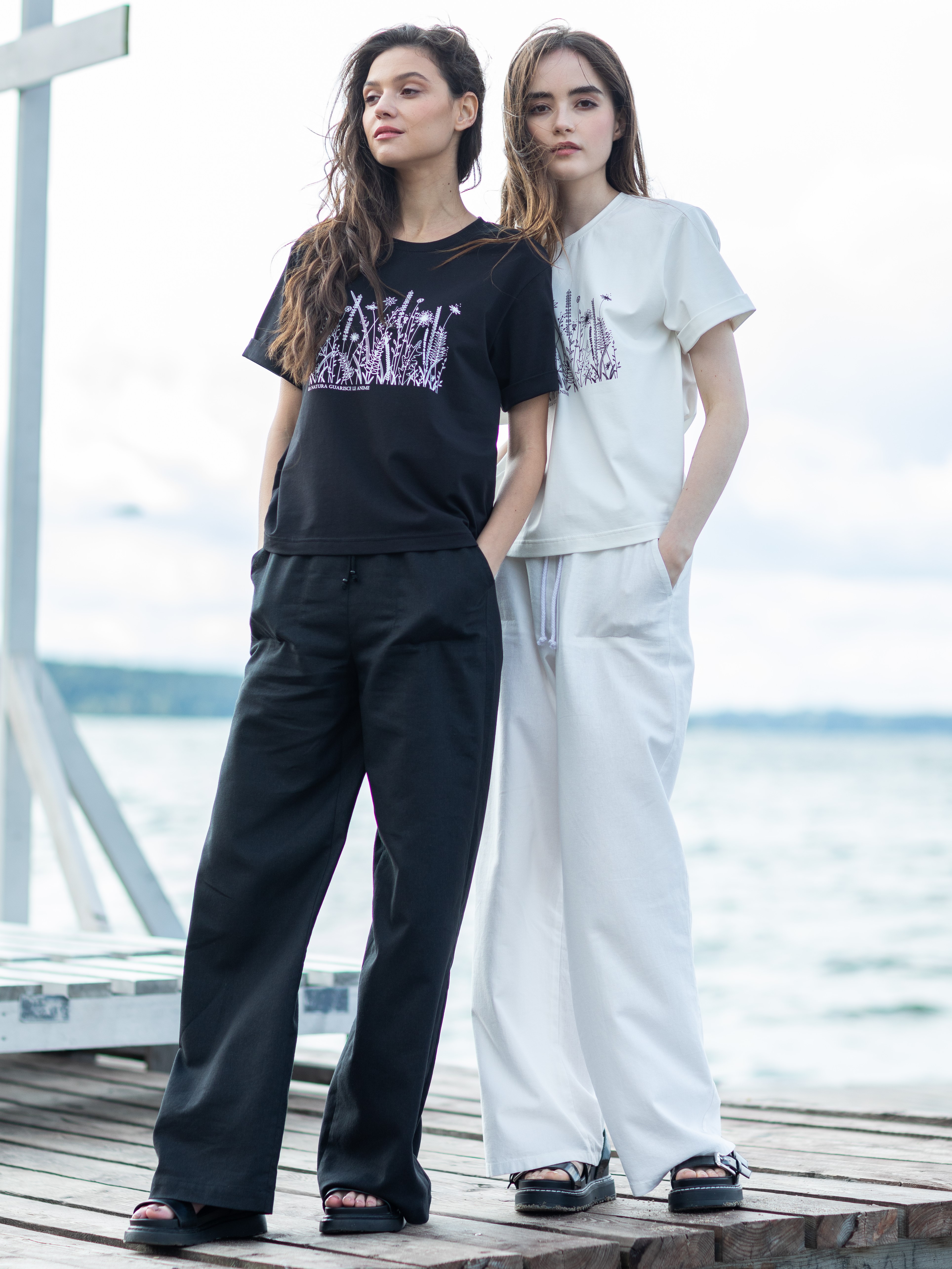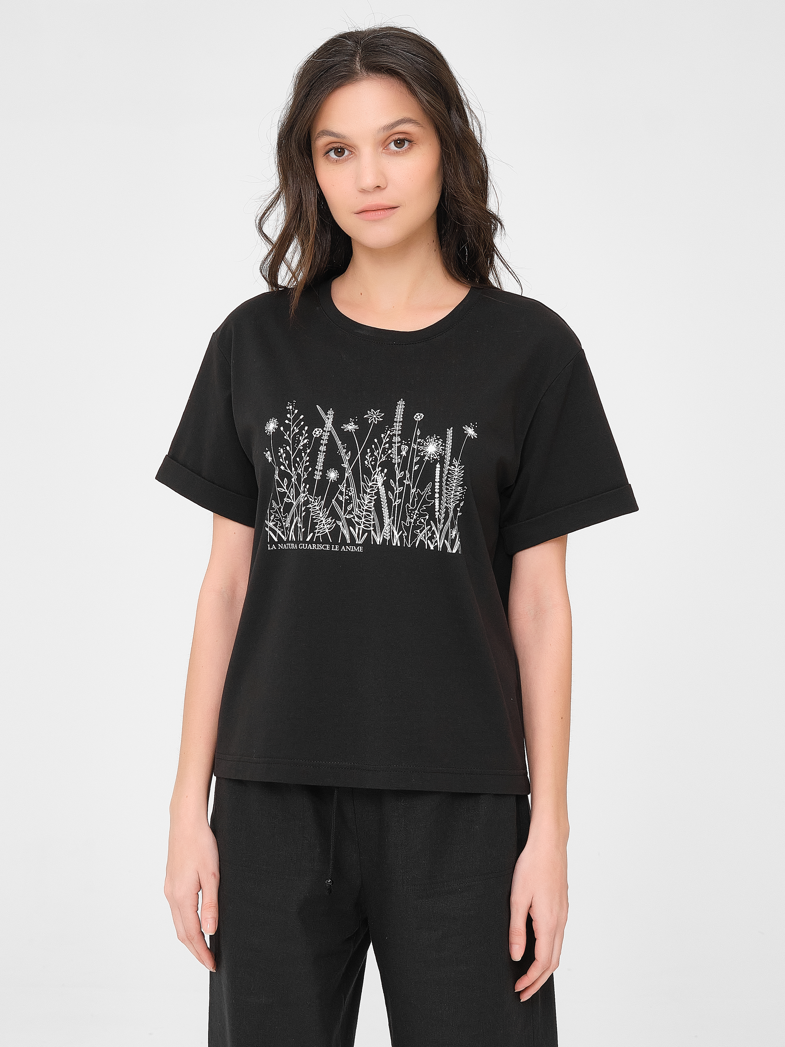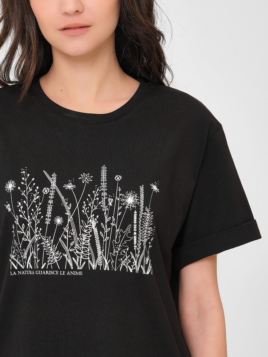 Горловина обработана бейкой. Плечо спущенное. По низу рукава отворот.