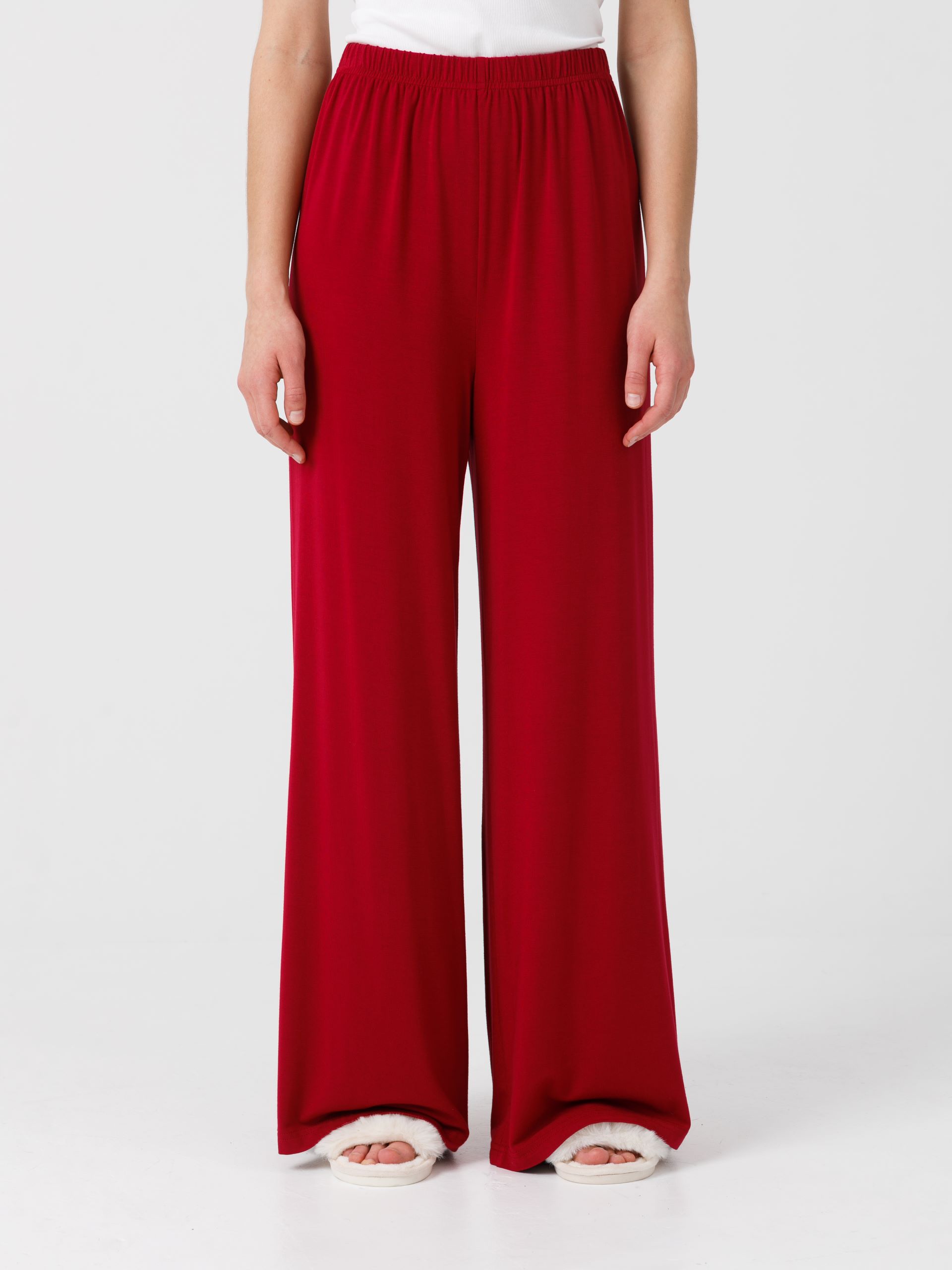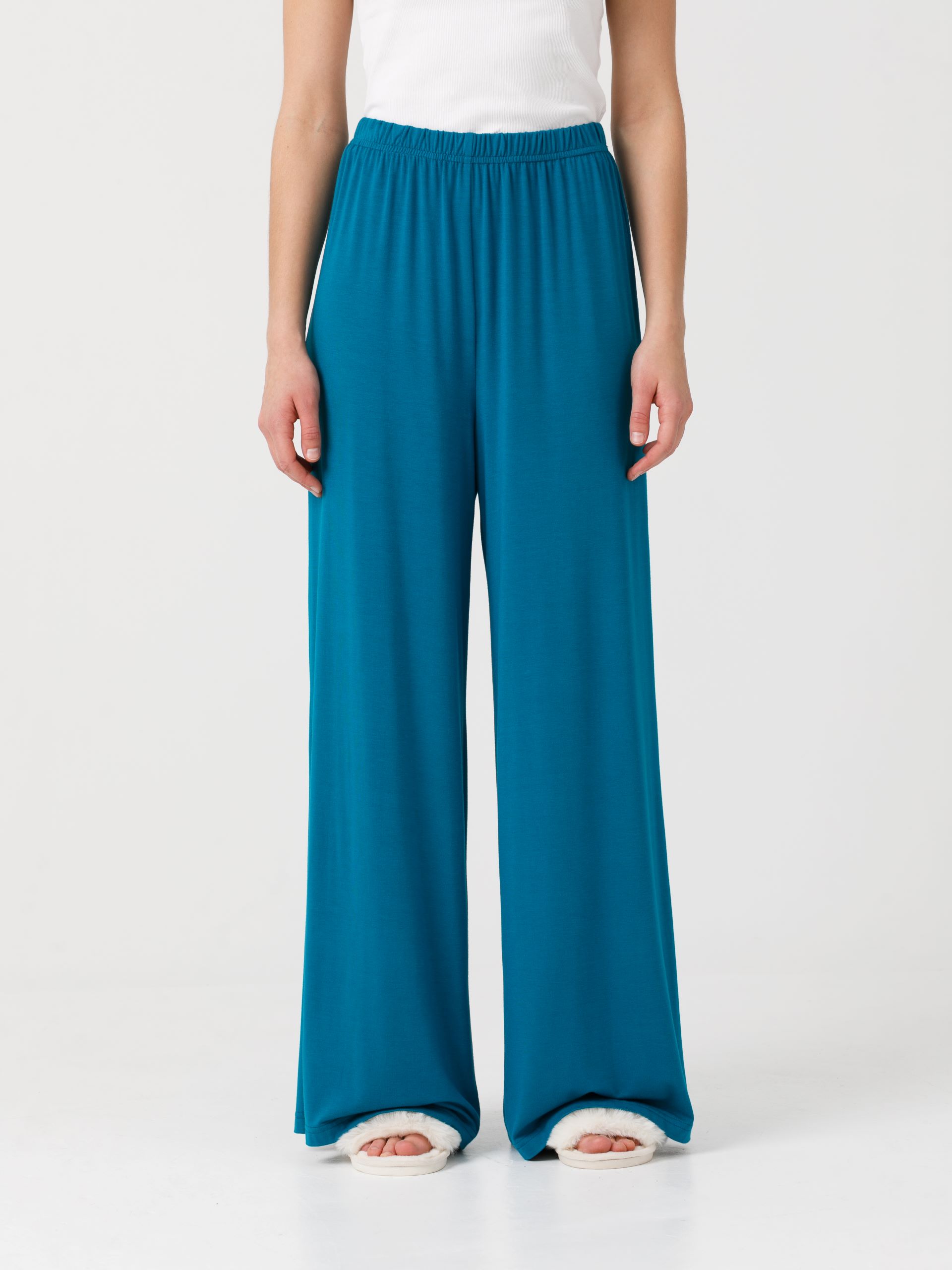 Брюки свободного кроя, на цельнокроеном эластичном поясе. Длина: 42р - 107см, 56р - 104,5см, ширина по низу: 42р - 36см, 56р - 36,5см.