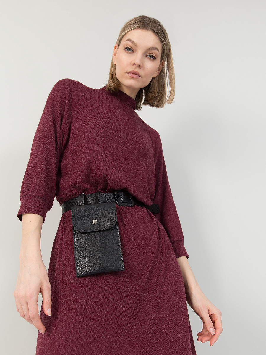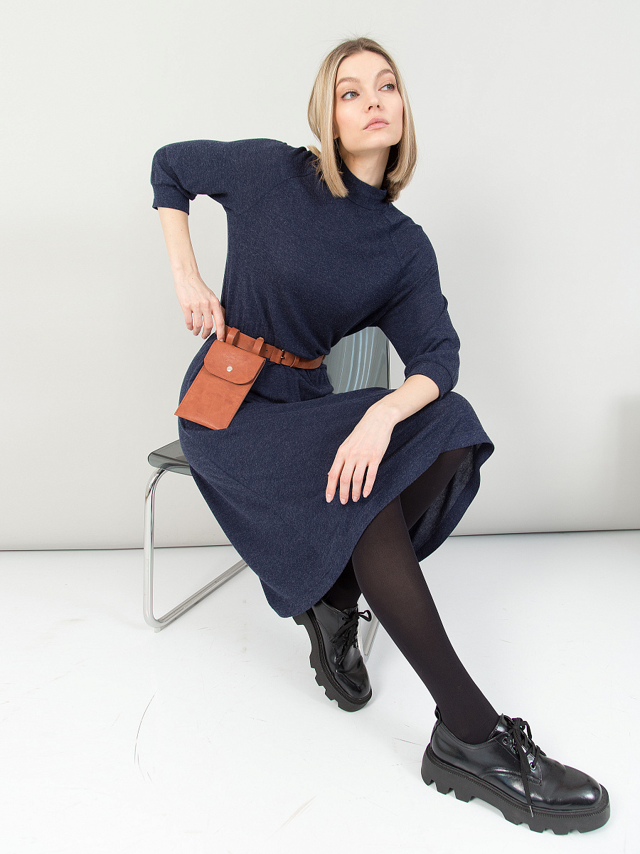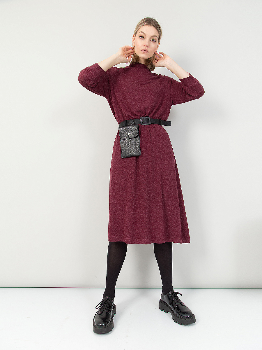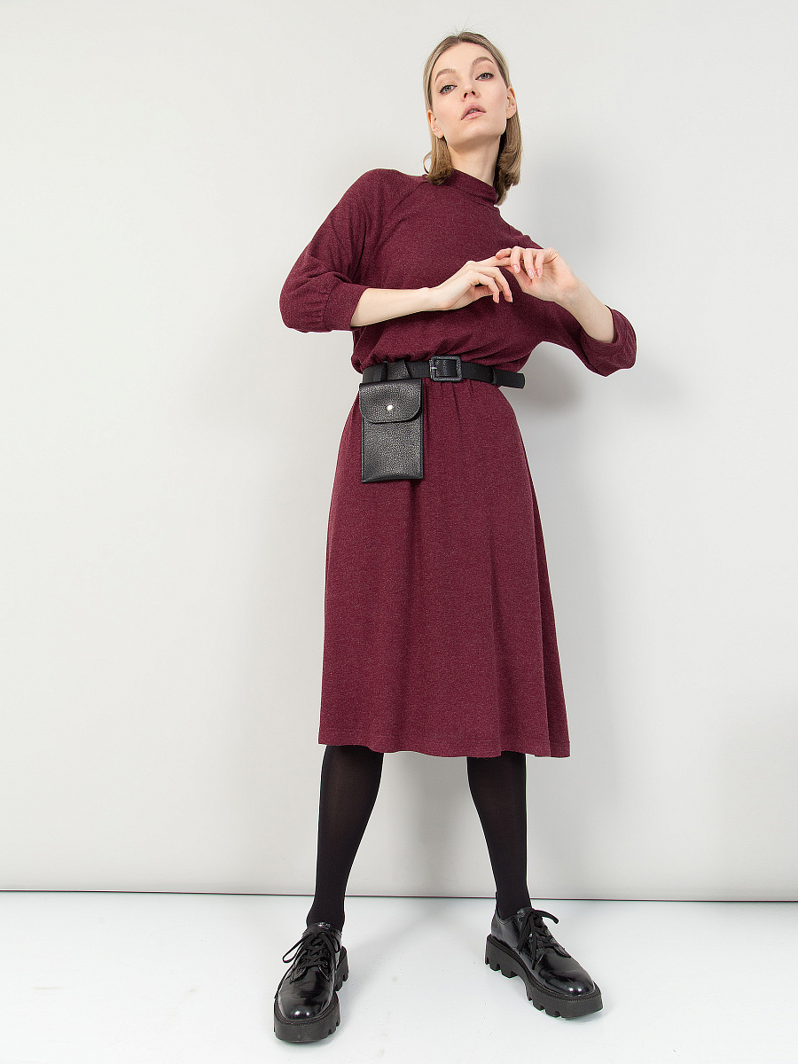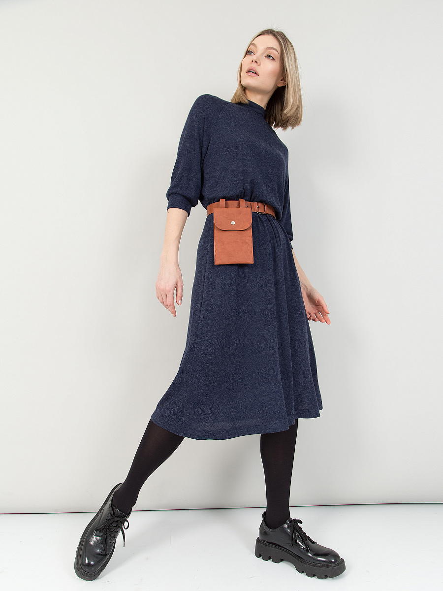 Рукав на манжете. Модель с отрезной линией талии, собраной на резинку. К комплекте черный ремень из экокожи без поясной сумки.
