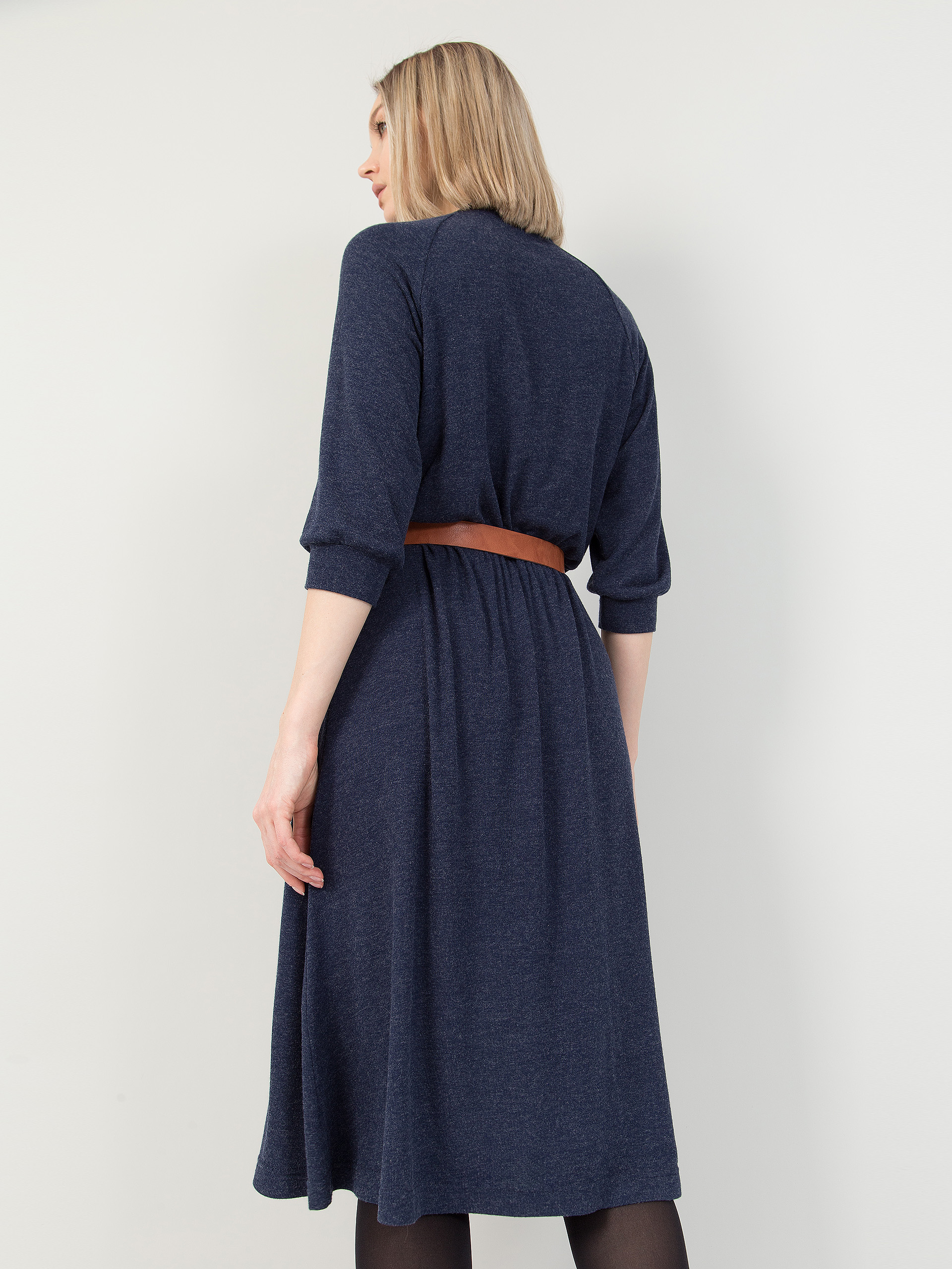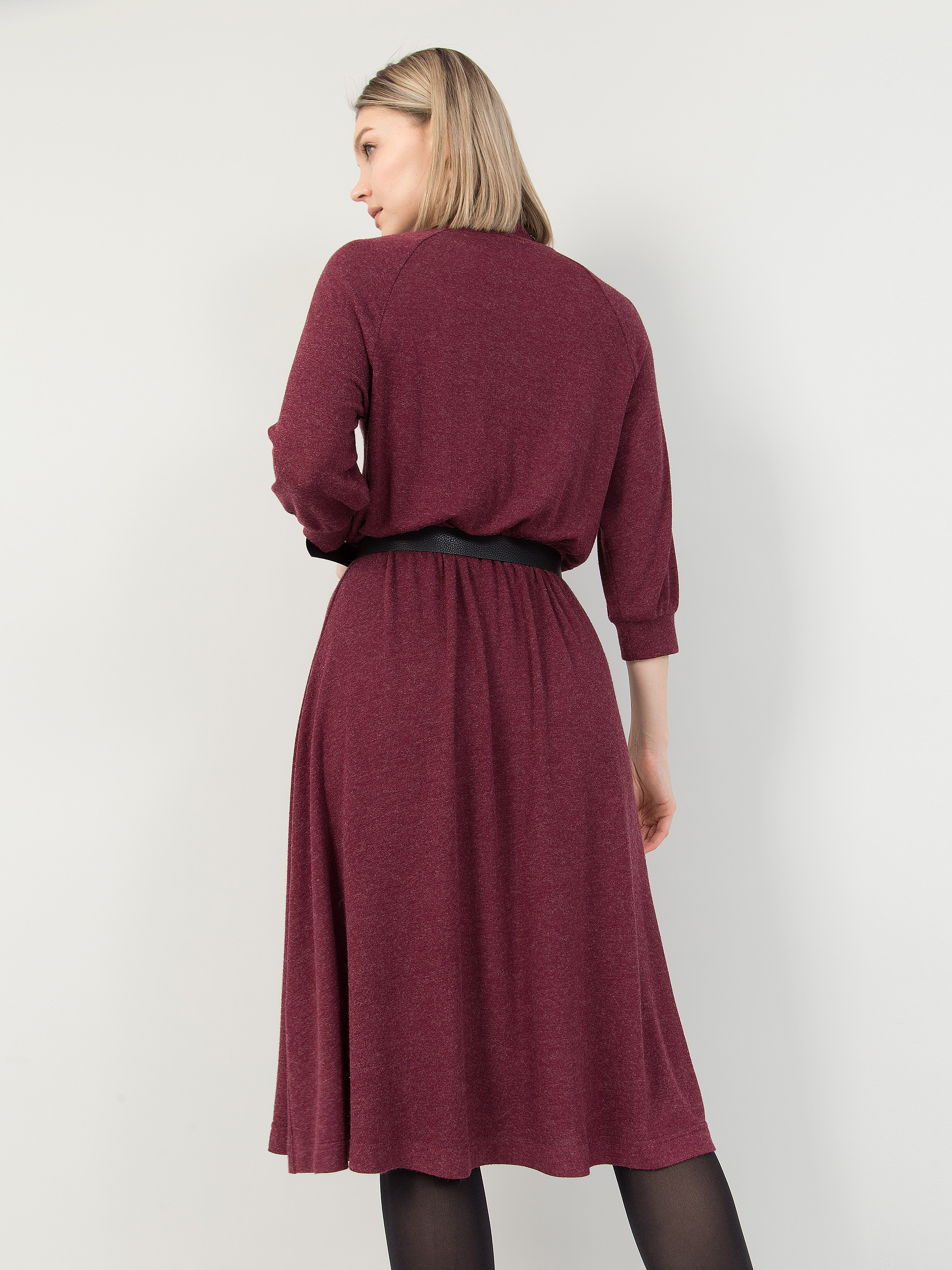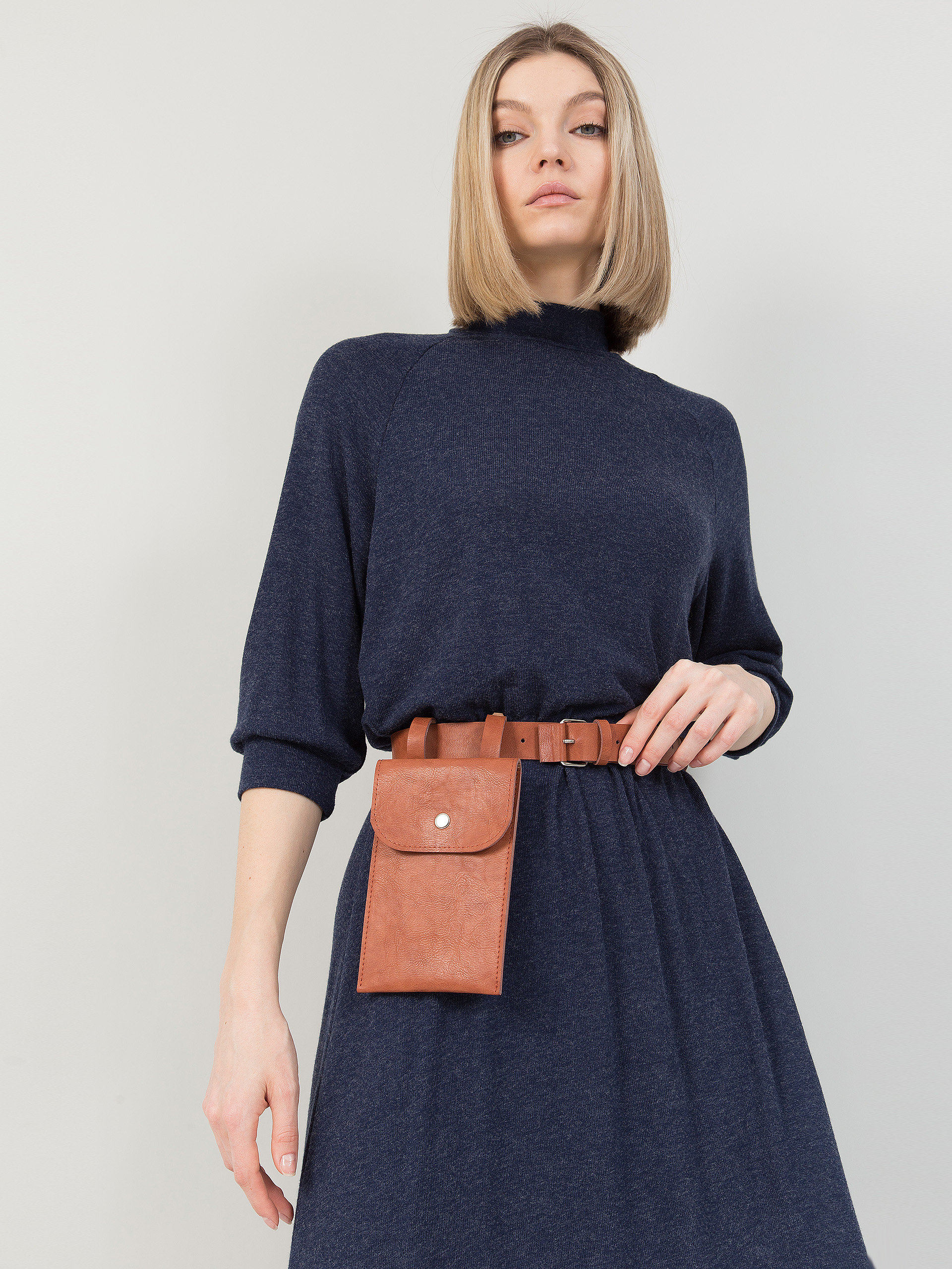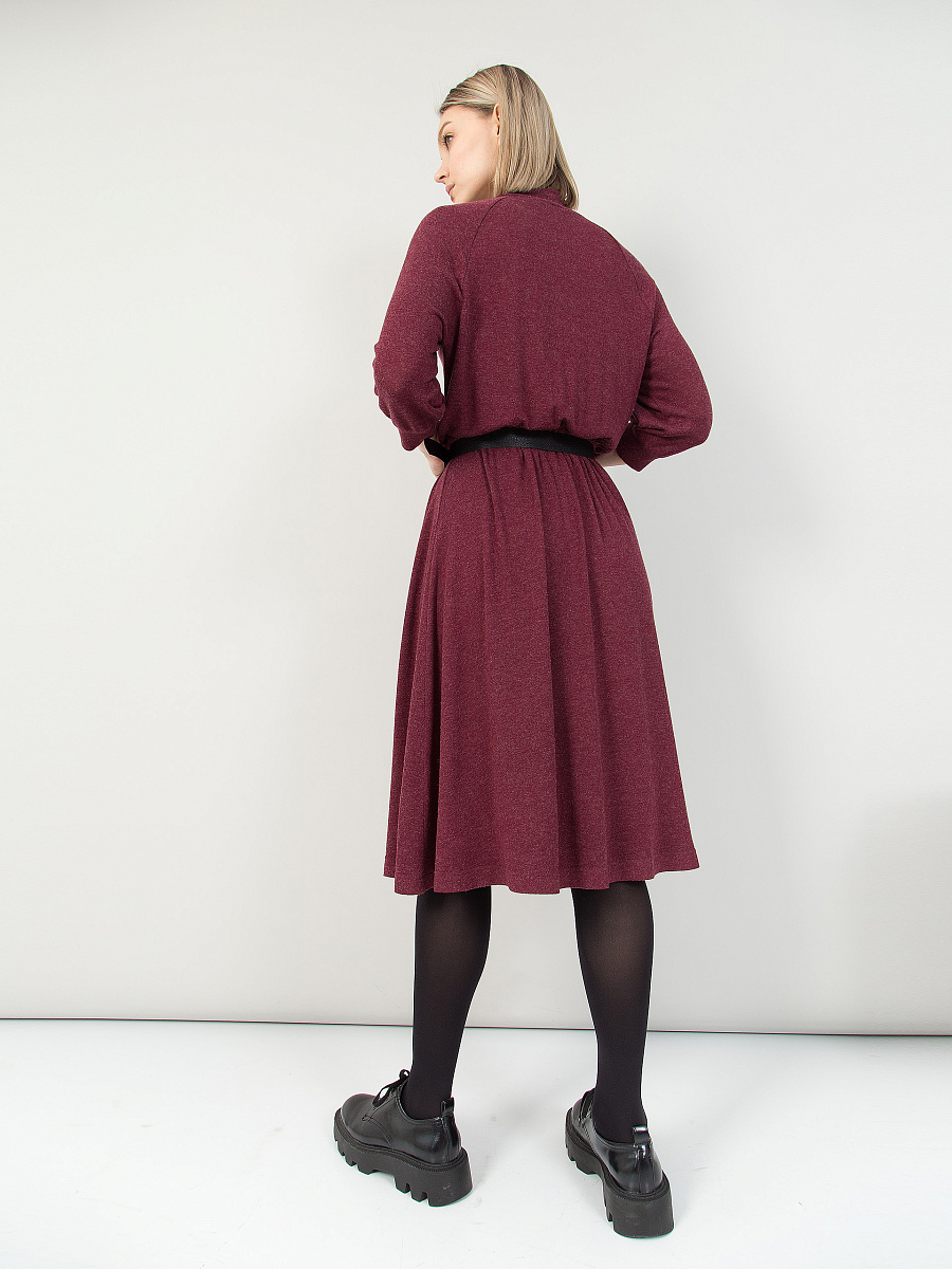 Рукав на манжете. Модель с отрезной линией талии, собраной на резинку. К комплекте черный ремень из экокожи без поясной сумки.