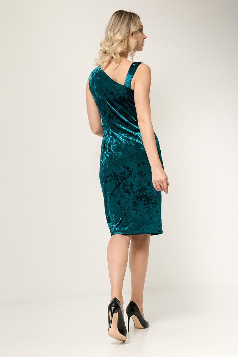 Платье из трикотажного бархата с эффектом «креш», прилегающего силуэта, ассиметричного кроя в верхней части, без рукавов