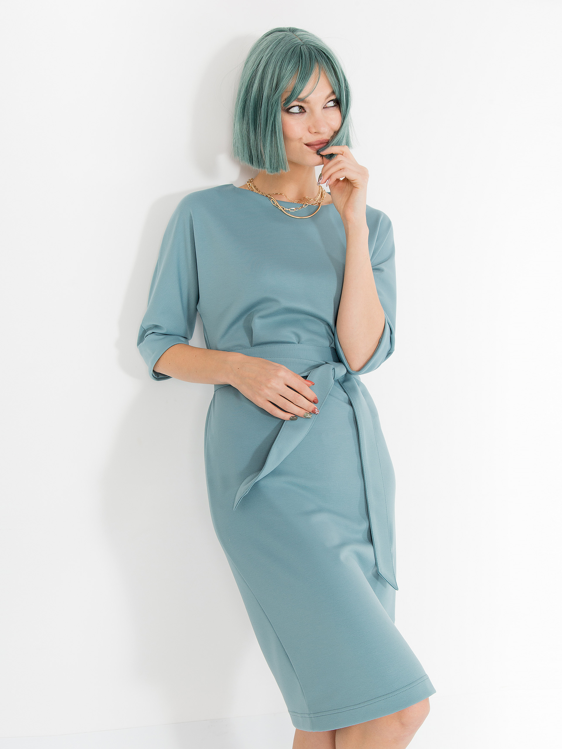 Платье с цельнокроеным рукавом, длиной ½, с притачной отворачивающейся манжетой