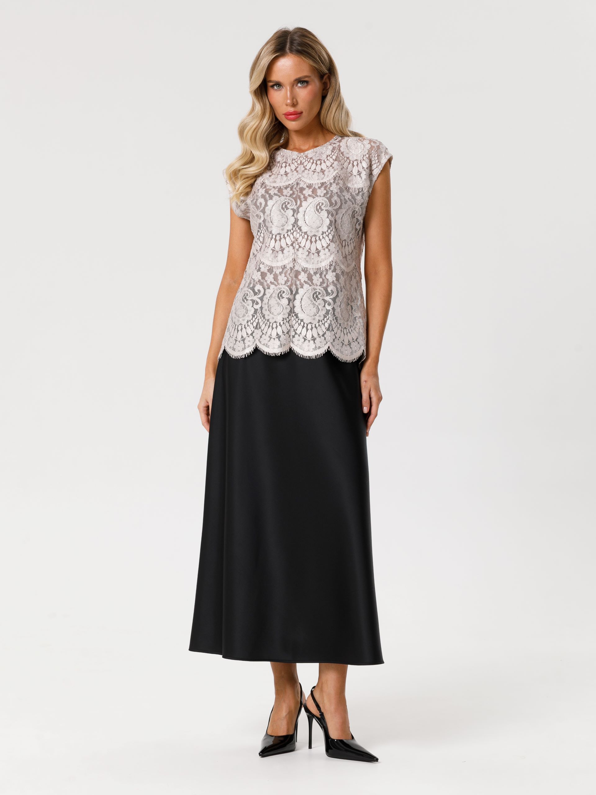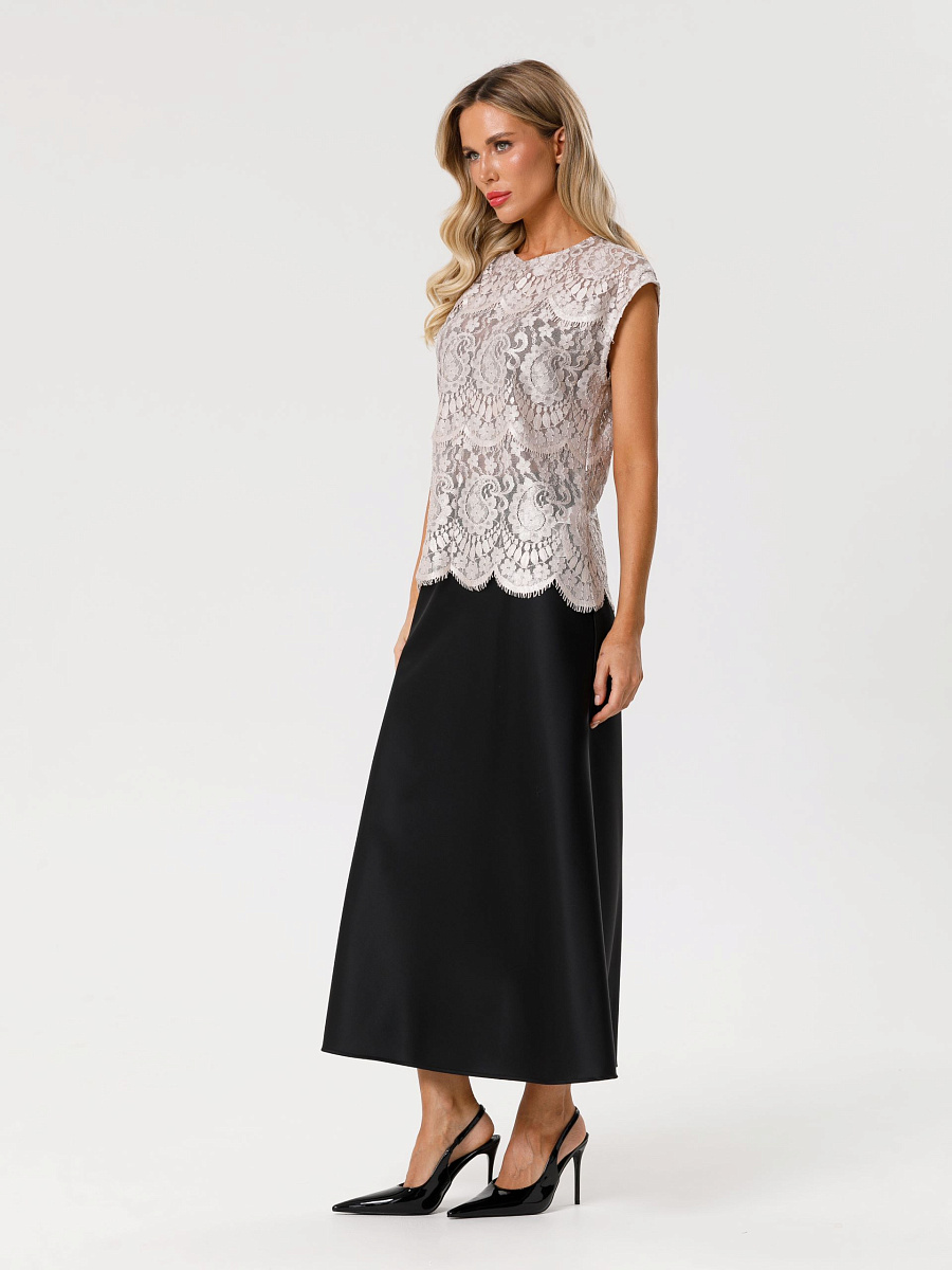 Модель А-силуэта, без подклада, без застёжки. По талии сборка на резину.
