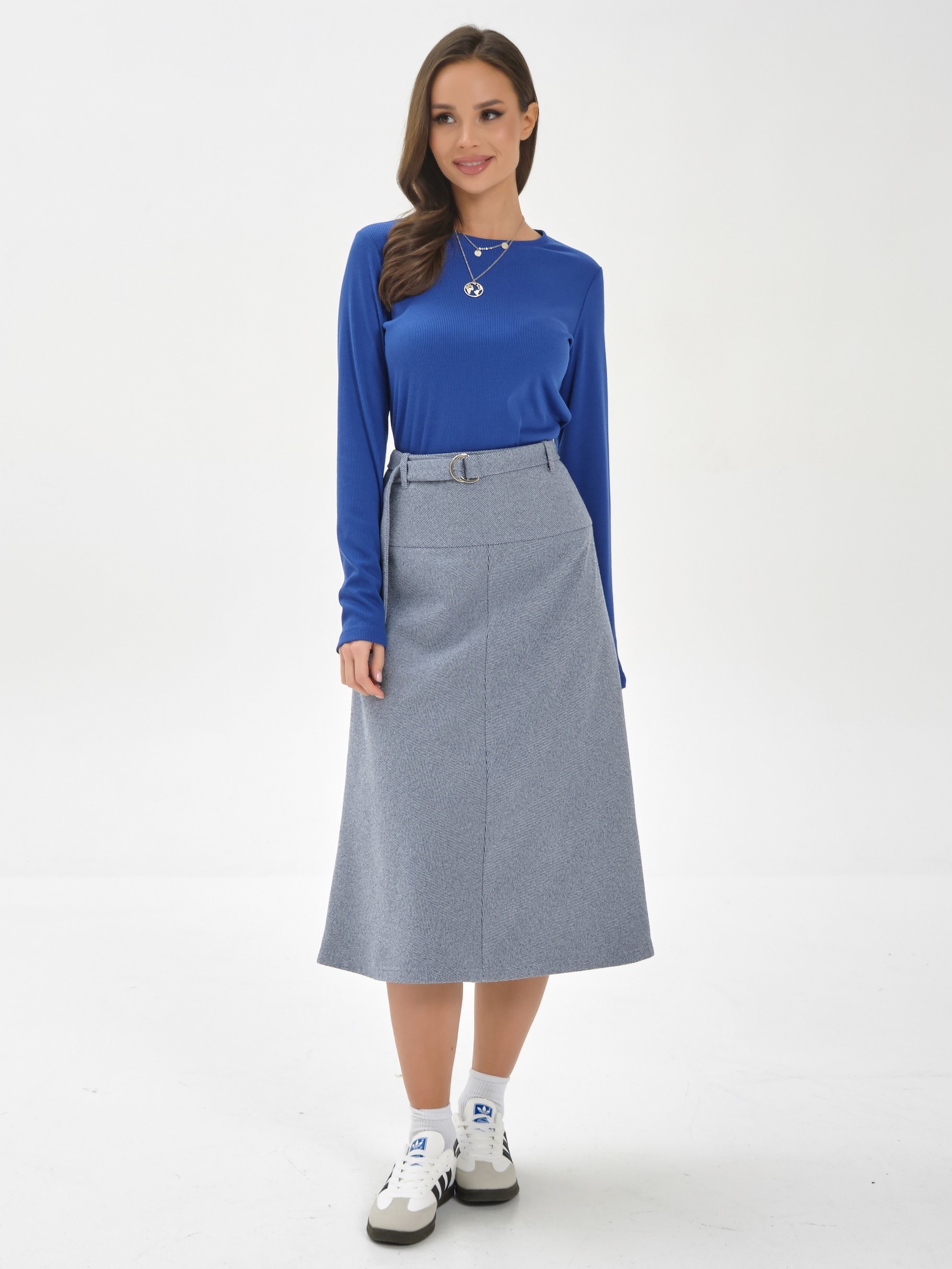 Модель на кокетке, со средним швом спереди и сзади. В шлёвки по талии вставлен пояс с полукольцами. Сзади в среднем шве обработана потайная застёжка молния.