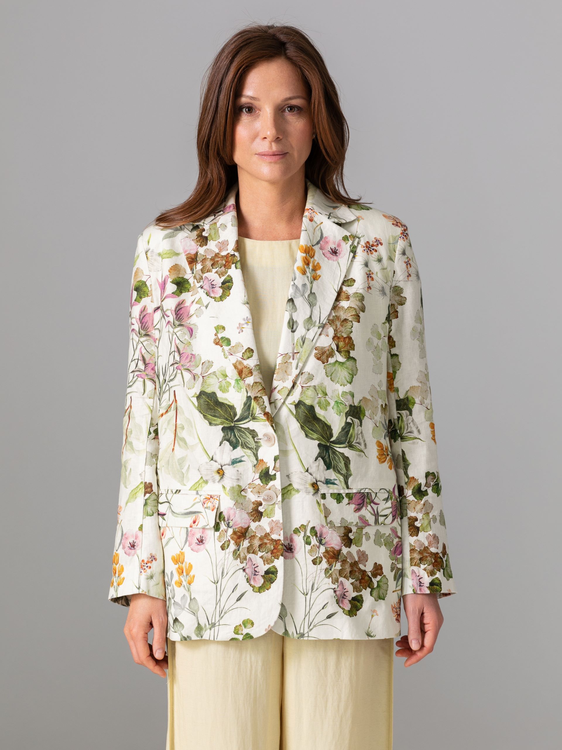 Модель прямого силуэта, без подклада. Спереди прорезные карманы в рамку с клапаном и застёжка на петли и пуговицы. Спинка со средним швом. В боковых швах обработаны шлицы. Воротник английский. По низу рукава шлица с застёжкой на петли и пуговицы. Все внутренние швы окантованы.