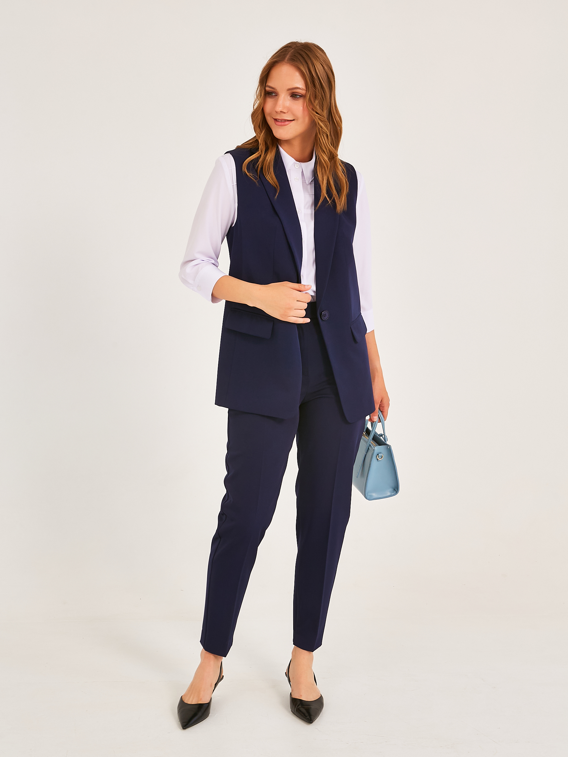 Модель с рельефами. Спереди прорезные карманы в рамку с клапанами. Средний шов спинки снизу заканчивается шлицей. Воротник пиджачного типа.